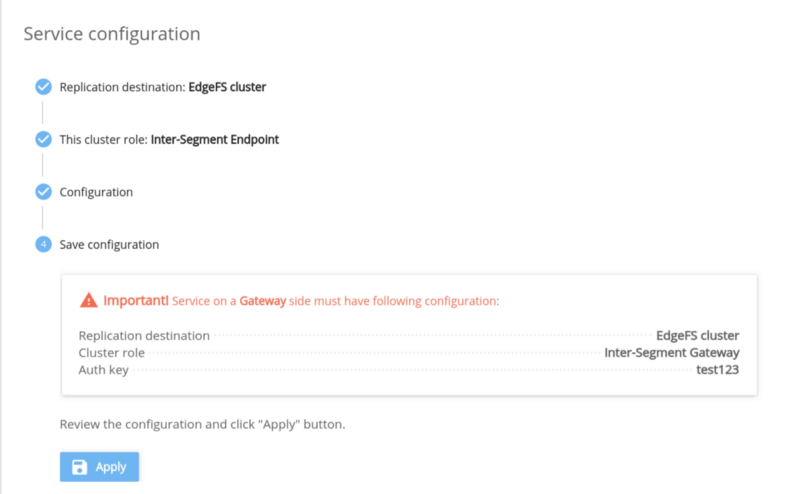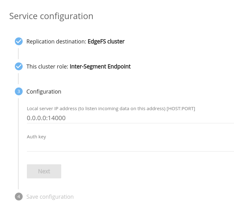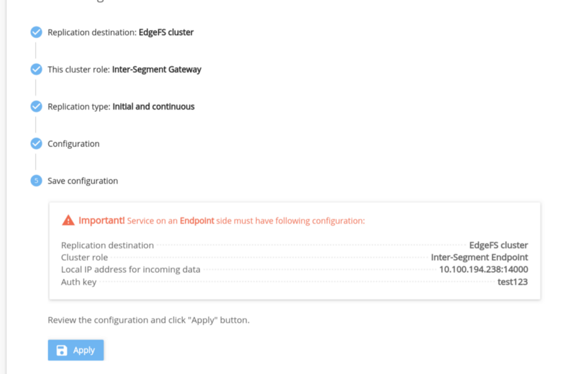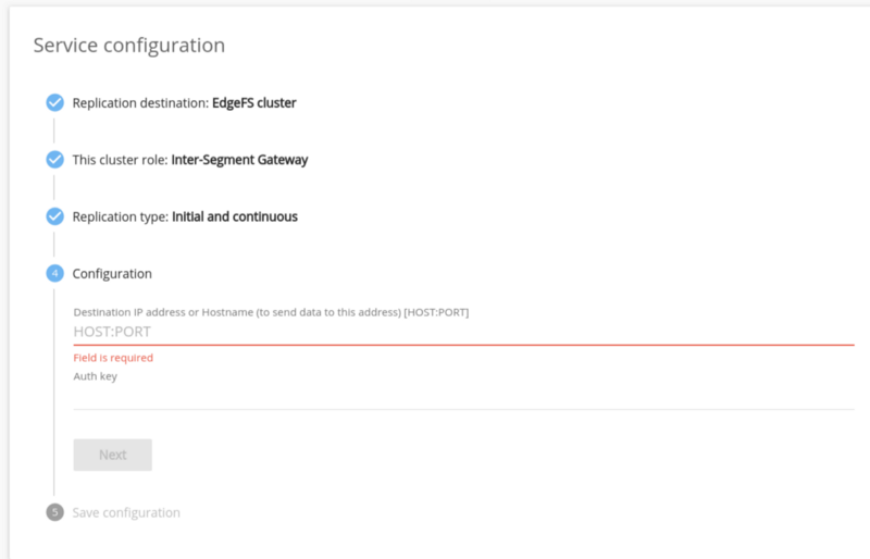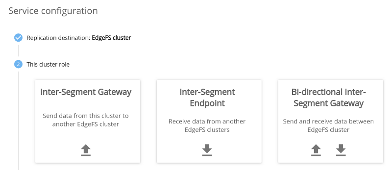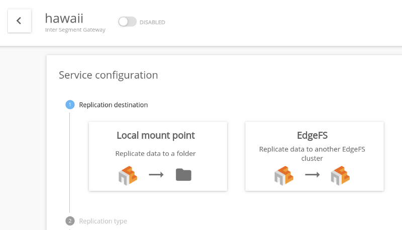 - レプリケーションの送信先を選択する画面になるため、「EdgeFS」を選択。