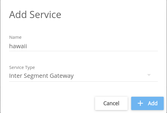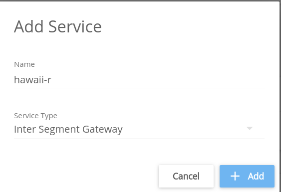 - ISGWサービスを作成します。Name,Service Type を選択し「Add」をクリック。