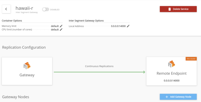 - レプリケーション先のISGW(hawaii-r)を先に作成し、IPを付与した状態にします。